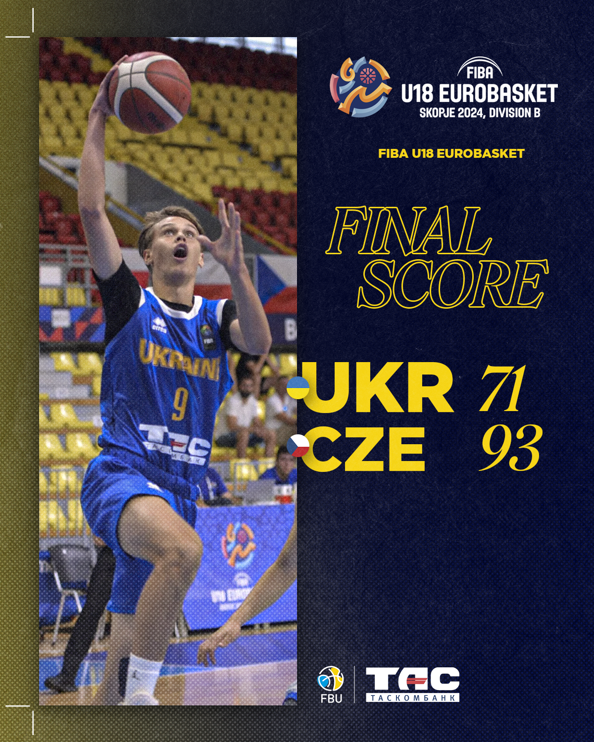 Команди провели рівну першу половину, пішовши на велику перерву за нічийного рахунку. Збірна України вийшла вперед в третій чверті, але потім пропустила ривок, який став ключовим в цьому матчі. Чеська команда виграла відтинок в другій половині 16:0, після чого лише продовжила збільшувати свою перевагу. Наша команда реалізувала лише 2 з 24 триочкових, програла підбирання та припустилася 19 втрат, що завадило нам поборотися за перемогу в першій грі турніру в Північній Македонії.