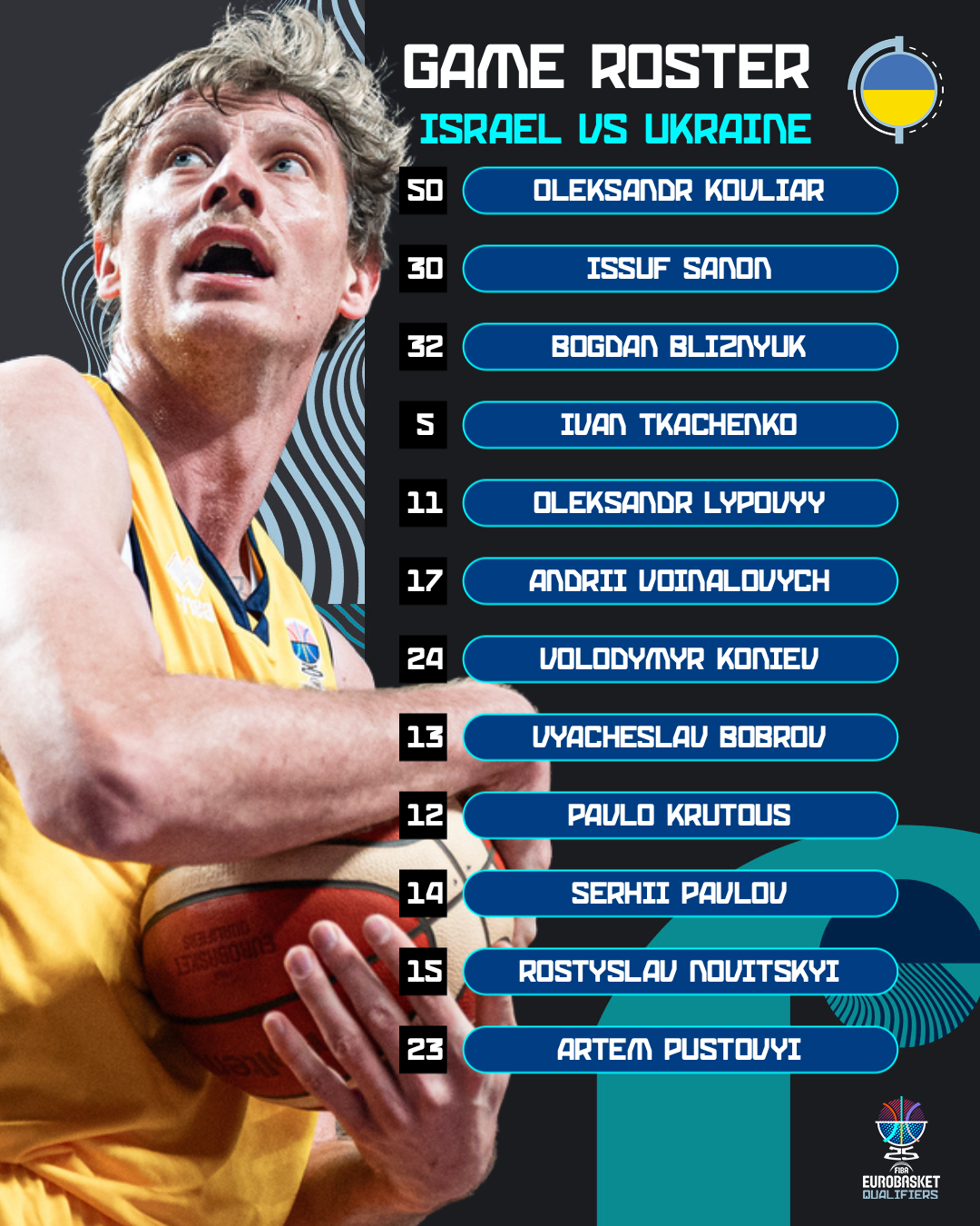 В порівнянні з попередньою зустріччю, в складі збірної України відбулася одна заміна: замість захисника Іллі Сидорова до заявки увійшов бігмен Сергій Павлов. Також одна заміна по позиції відбулася в складі наших суперників — замість Адама Аріеля завтра зіграє Рафі Менко.