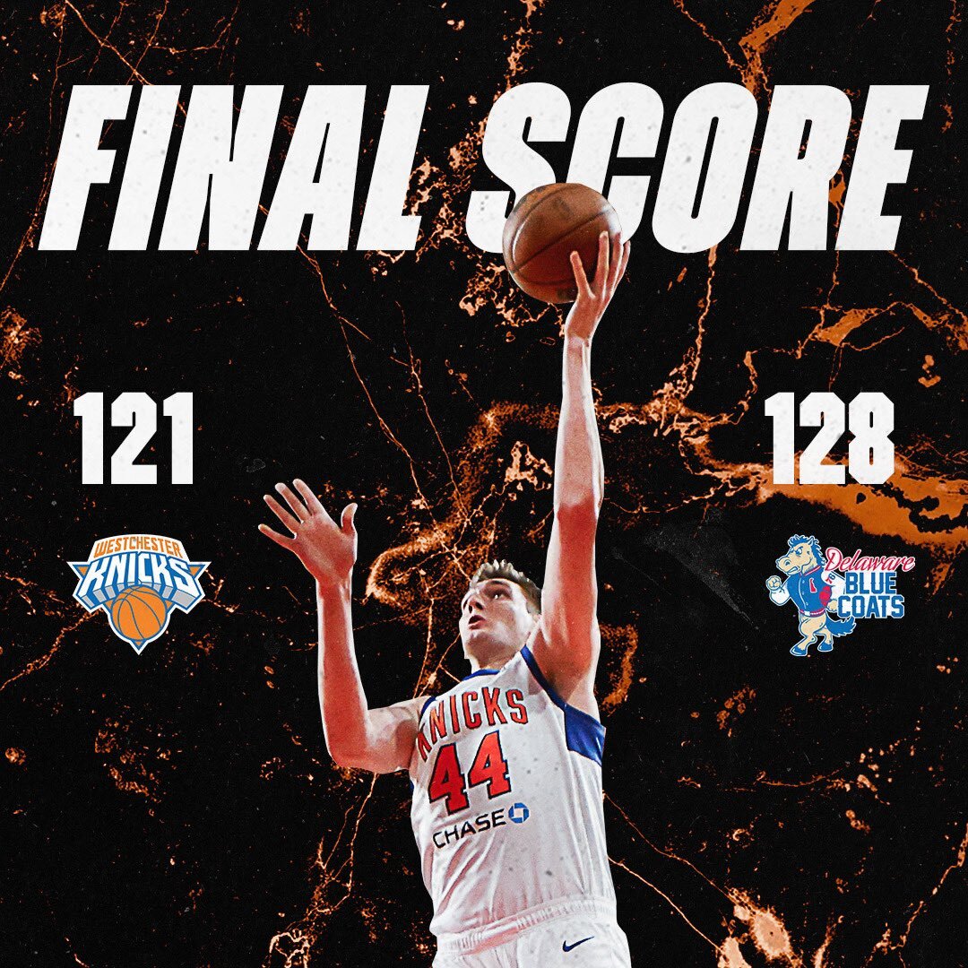 Вестчестер все ще залишається без перемог в регулярному сезоні G-Ліги, поступившись цієї ночі Делаверу 121:128. Центровий збірної України Дмитро Скапінцев вдруге поспіль після повернення з НБА зіграв у старті команди і відзначився рекордними для себе в сезоні 20 очками (10/13 двоочкові, 0/2 триочкові, 0/1 штрафні), зібрав 9 підбирань, зробив 3 передачі, 1 перехоплення, 1 блок-шот при 3 фолах та 1 втраті.
