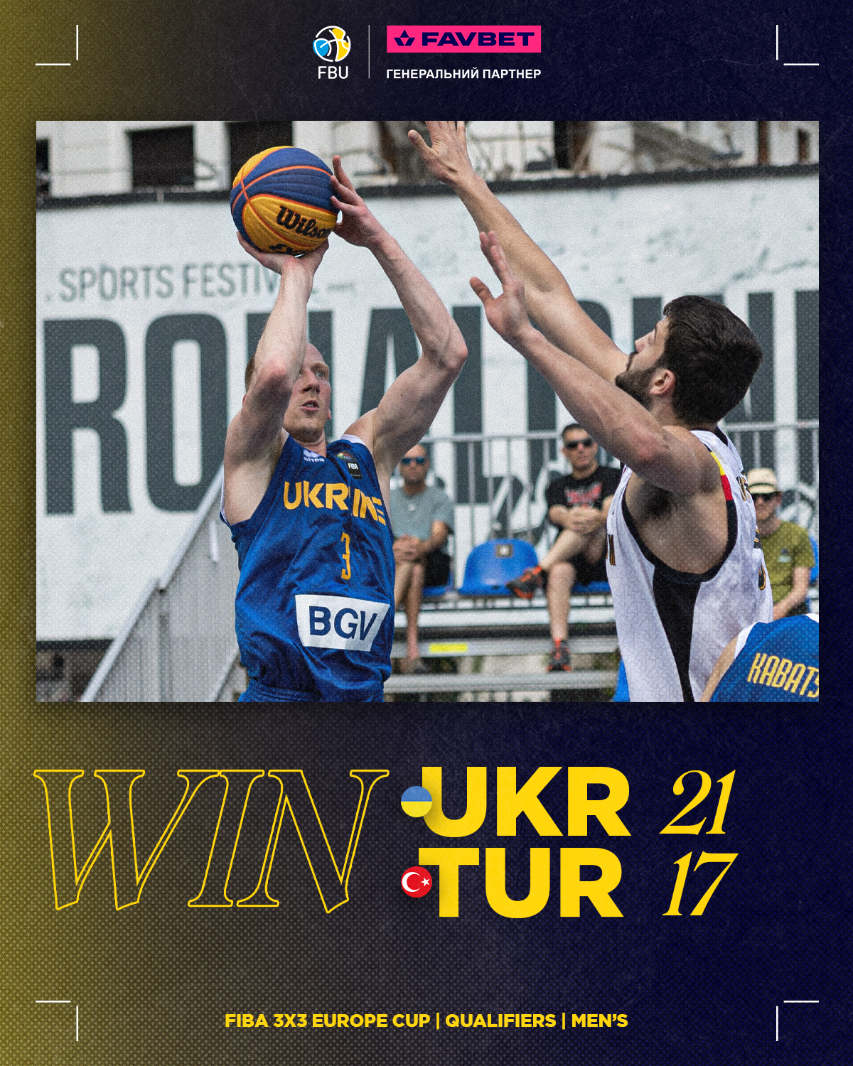 Чоловіча збірна України з баскетболу 3х3 здобула першу перемогу у відборі на чемпіонат Європи. Національна команда з рахунком 21:17 перемогла Туреччину.