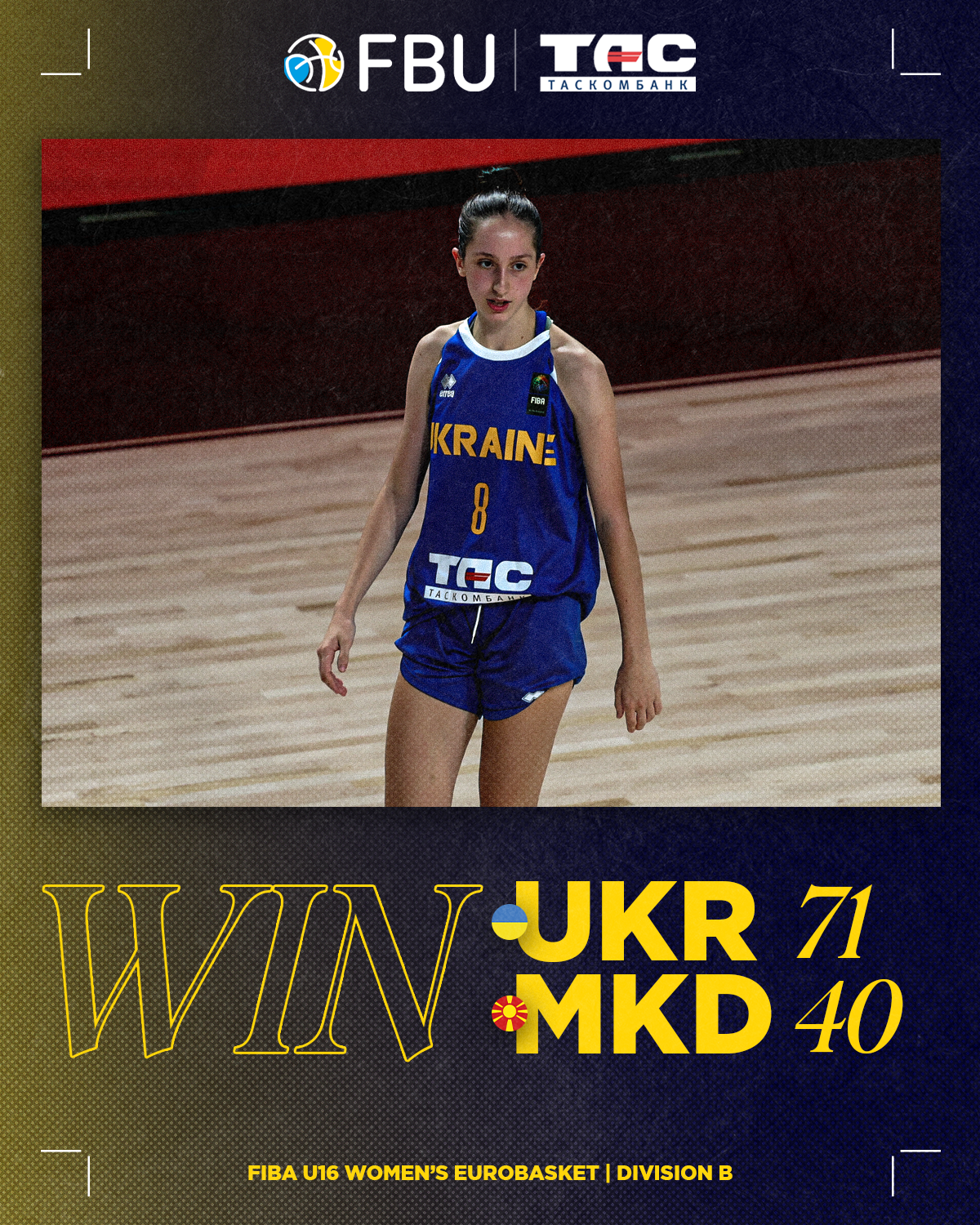 Жіноча збірна України U-16 здобула свою першу перемогу на чемпіонаті Європи в Дивізіоні В, здолавши в заключній грі групового раунду команду Північної Македонії — 71:40.