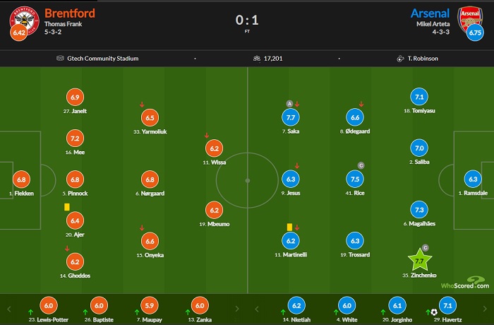 Украинский защитник лондонского «Арсенала» Александр Зинченко отлично проявил себя в выездном поединке 13 тура АПЛ против «Брентфорда». Его признали лучшим игроком в составе обеих команд и оценили выше всех – в 7,7 и 8,5 балла от Whoscored и Sofascore.